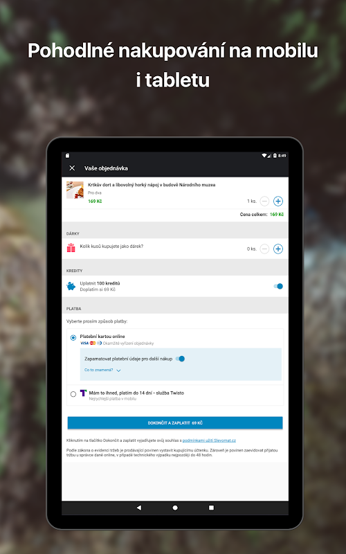 • Uložení karty pro další nákupy – plaťte stejně rychle a jednoduše jako na webu Slevomatu.