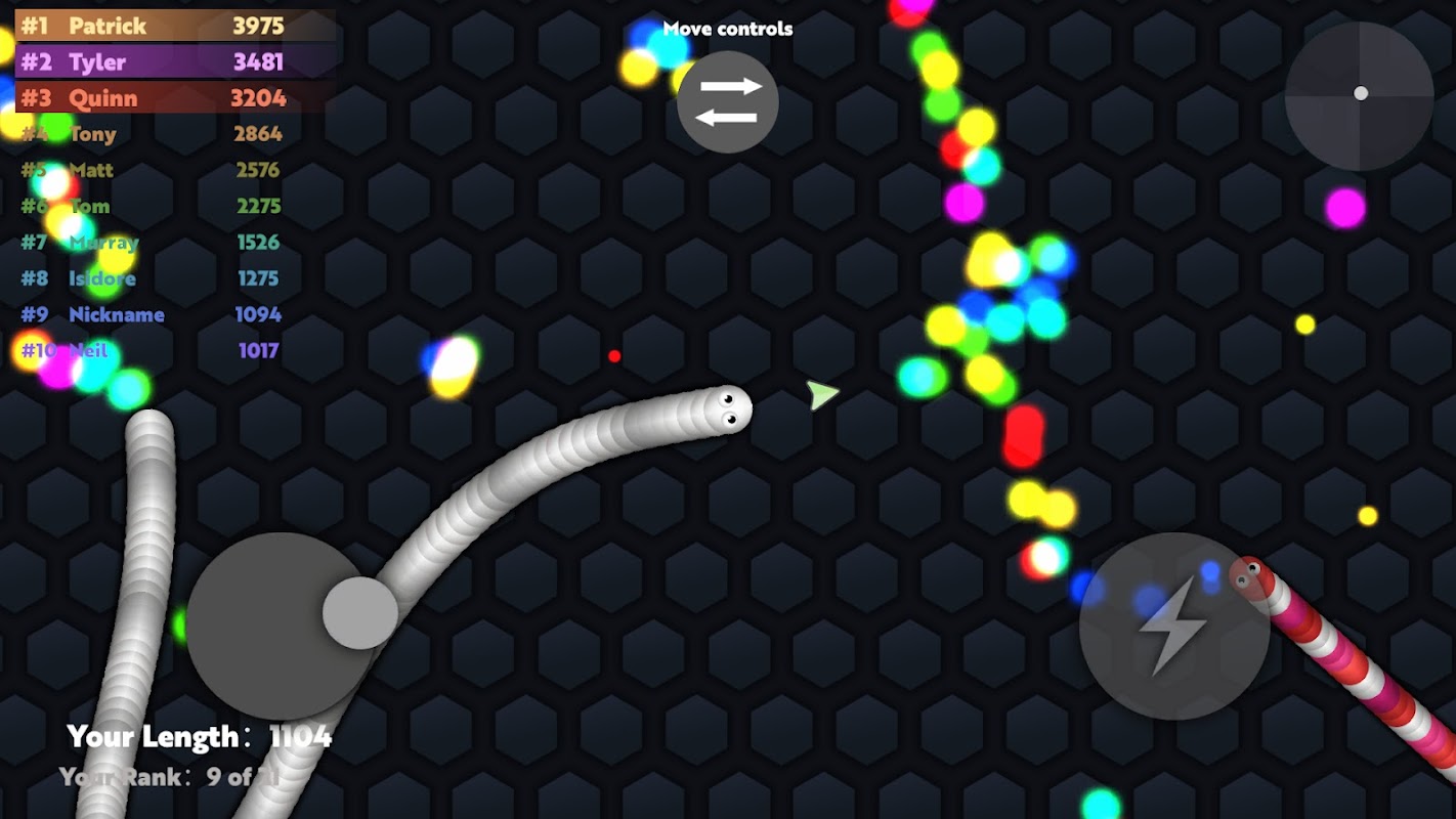 Slide.io to także wieloosobowa gra PVP w węża.io! Możesz grać sam offline, bez względu na to, gdzie jesteś; możesz także walczyć z wężowymi rywalami lub przyjaciółmi online. Uważaj na innych węży i staraj się nie wpaść na ciało, w przeciwnym razie będziesz musiał zacząć od zera.