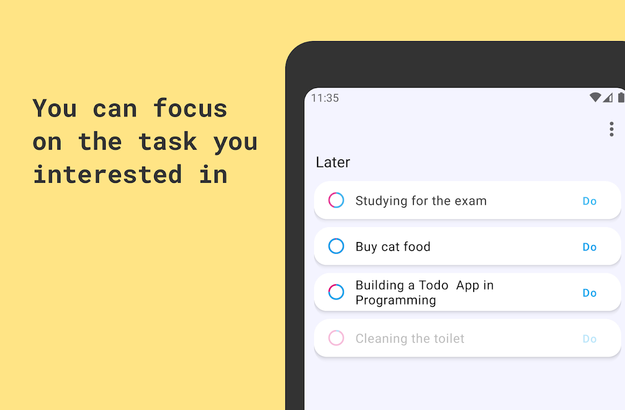 Once you've added a task to your to-do list, when you don't feel like doing it anymore, you can actively put it off!