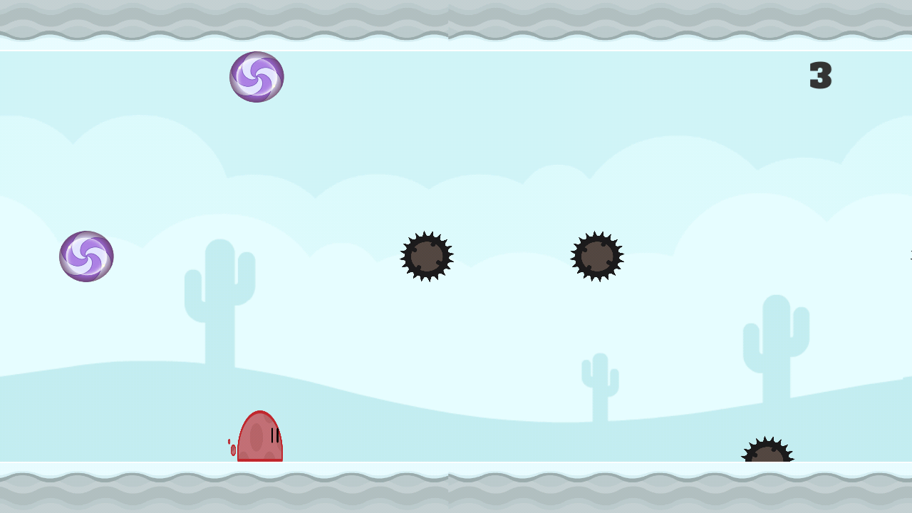 Your timing is crucial to jump up or down from the floor to the ceiling, to avoid the obstacles while you try to collect the candy.