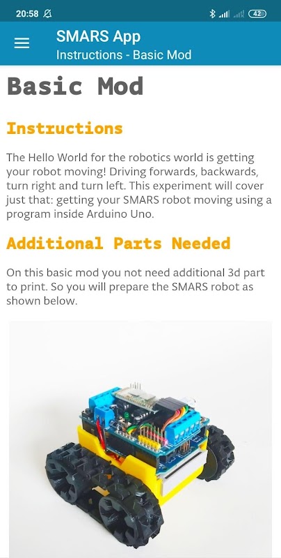 Aplikacja SMARS ma na celu ułatwienie zbudowania robota SMARS zawierającego instrukcje, kodowanie interfejsu zdalnego sterowania Arduino i Android do zabawy.