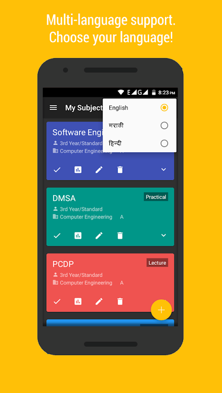 Aby dodać dowolną liczbę temat / kursów i usunąć reklamy należy kupić Inteligentny Attendance Pro.