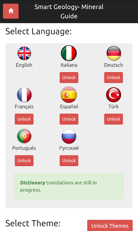 Lista mineralne, klasyfikacja, ramy czasowe, słownik, wsparcie językowe, tematy nieaktywny