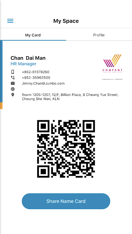 *Able to share the digital name card