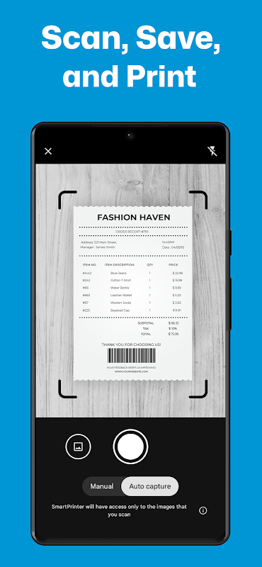 Użyj aparatu, aby robić zdjęcia lub robić zdjęcia i natychmiast konwertować je do plików gotowych do druku dzięki naszemu wbudowanemu skanerowi. Niezależnie od tego, czy skanujesz paragony, dowody osobiste, czy obrazy wysokiej jakości, narzędzia do skanowania dokumentów i skanowania płynnie działają, aby spełnić Twoje potrzeby. Możesz również skanować, zapisywać i drukować pliki PDF za pomocą telefonu komórkowego — bez komputera!