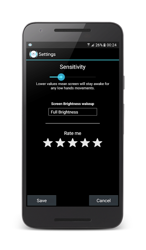 Screen Auto On/Off Calibrate with Smart Stay technology and using the gyroscope sensor detecting your hands movements will keep the Screen on while you're holding your device so you can keep read your books, articles, text, watching videos and more easily, it's free, lite and simple to use.