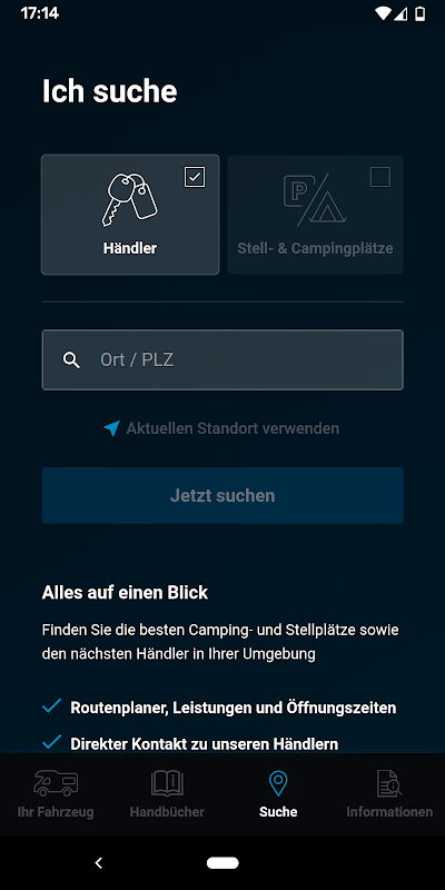 Knaus Tabbert realizuje marzenie o niezależnej, indywidualnej i komfortowej podróży. Bezpłatna aplikacja smartCI marek KNAUS, TABBERT, WEINSBERG i T @ B to cyfrowy towarzysz na wakacjach na kołach. Przydatne informacje o pojeździe, takie jak instrukcje obsługi lub funkcje wyszukiwania dla dealerów i stacji obsługi, pomagają w pytaniach i usługach. A dzięki jednej z najbardziej wszechstronnych baz danych kempingów i miejsc parkingowych szybko i łatwo znajdziesz odpowiednie miejsce na wakacje. Spodziewaj się kolejnych etapów rozbudowy w nadchodzących miesiącach aż do sterowania pojazdem rekreacyjnym.
