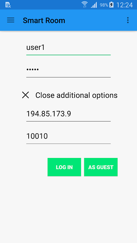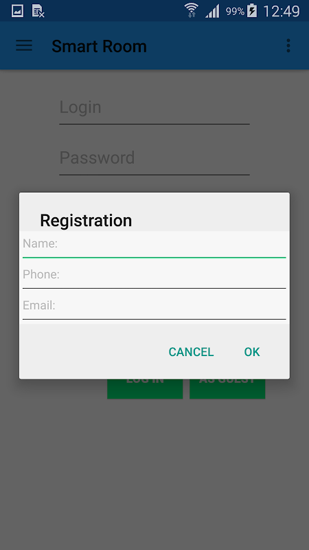 SmartRoom client runs on end-user mobile device (smartphone), shares personal conference-related information in the SmartRoom space and accesses appropriate services. For the current speaker the client interacts with the Projector service, allowing speaker to control the course of presentation. In parallel, clients of other participants access informational services of this conference.