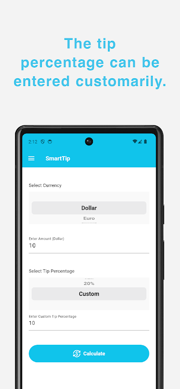 "SmartTip" is an app that allows you to easily and quickly calculate tips for meals and services. Just enter the total amount and the desired tip percentage, and it will instantly display the tip amount and the total payment.