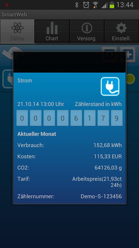 In den Einstellungen ist zunächst ein Demokonto hinterlegt. Voraussetzung für die Nutzung dieser App mit Ihren Zählerdaten ist ein Stromlieferungsvertrag mit der Stadtwerke Münster GmbH sowie die Beauftragung von SmartWeb.