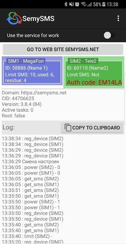 2. Install SemySMS app on your Android phone(s). You can download it from a link on main page of the site, or from here.
