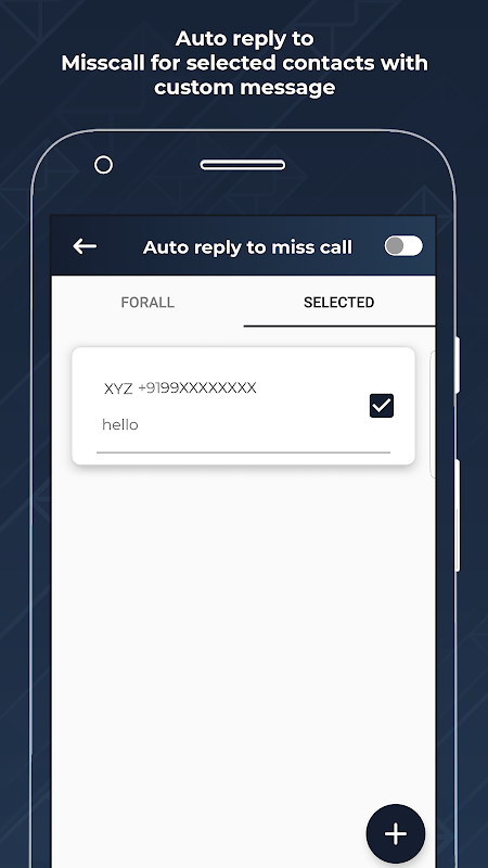 - Auto Reply to Missed Call : Reply with customized message to all missed calls. You can set a single message to all contact and special message to selected contact.