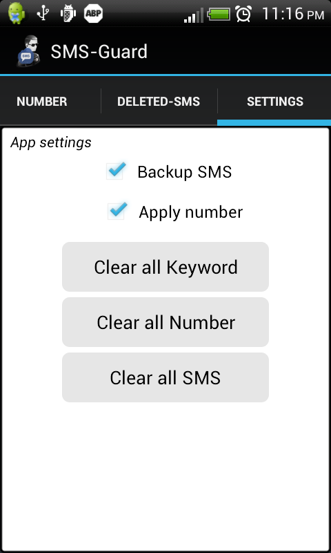 4. For number: suppose you want to guard/ignore all sms from number "+8801912000000". Now from add number just add this number (no quotes)