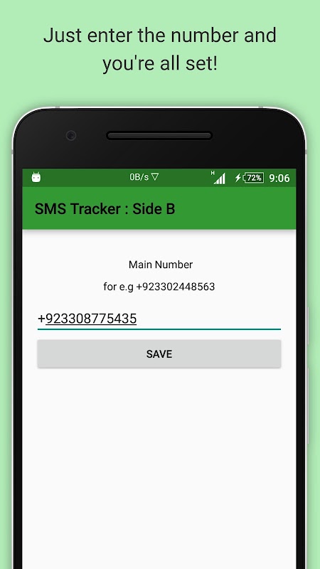 Install SMS Tracker : Side B on your second phone and enter the phone number of the first phone. (IMPORTANT: Turn on Location on second phone)