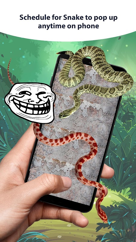 You can make snake on phone screen prank as your living reptile now by downloading this snake prank app to your phone. Set up a schedule for the snake on your screen and have fun with your friends! Join snake on screen and snake game.