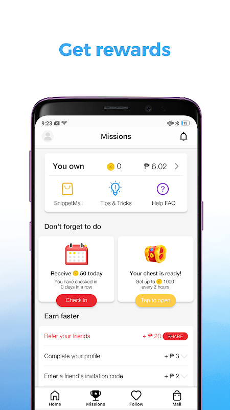 Nagradzane doświadczenie jak żadne inne - czytanie nigdy nie było tak satysfakcjonujące. SnippetMedia nagradza Cię Kachings za każdym razem, gdy czytasz, oglądasz i udostępniasz treści, które możesz wymienić na przedmioty w SnippetMall.