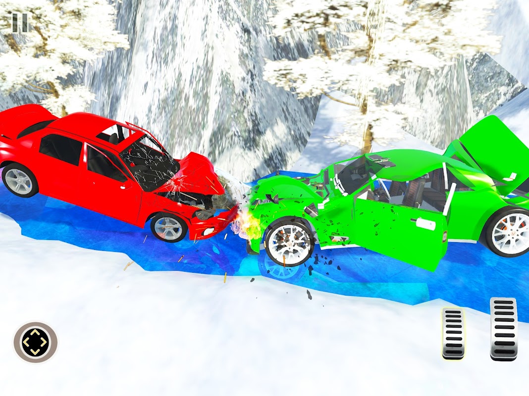 Symulator zderzenia samochodu ze śniegiem i lodem jest o wiele bardziej zabawny niż symulator zderzenia samochodu, jest śliska droga lodu, na której można rozbić samochód i zburzyć samochód za pomocą stuntu samochodowego. Możesz cieszyć się wypadkiem samochodowym podczas jazdy po śniegu, są o wiele więcej zniszczeń samochodów z efektem śniegu. Istnieją również różne przeszkody, aby rozbić samochód na śnieżnej drodze, jest wyścig mostowy i demontaż samochodu jak prawdziwy wypadek samochodowy.