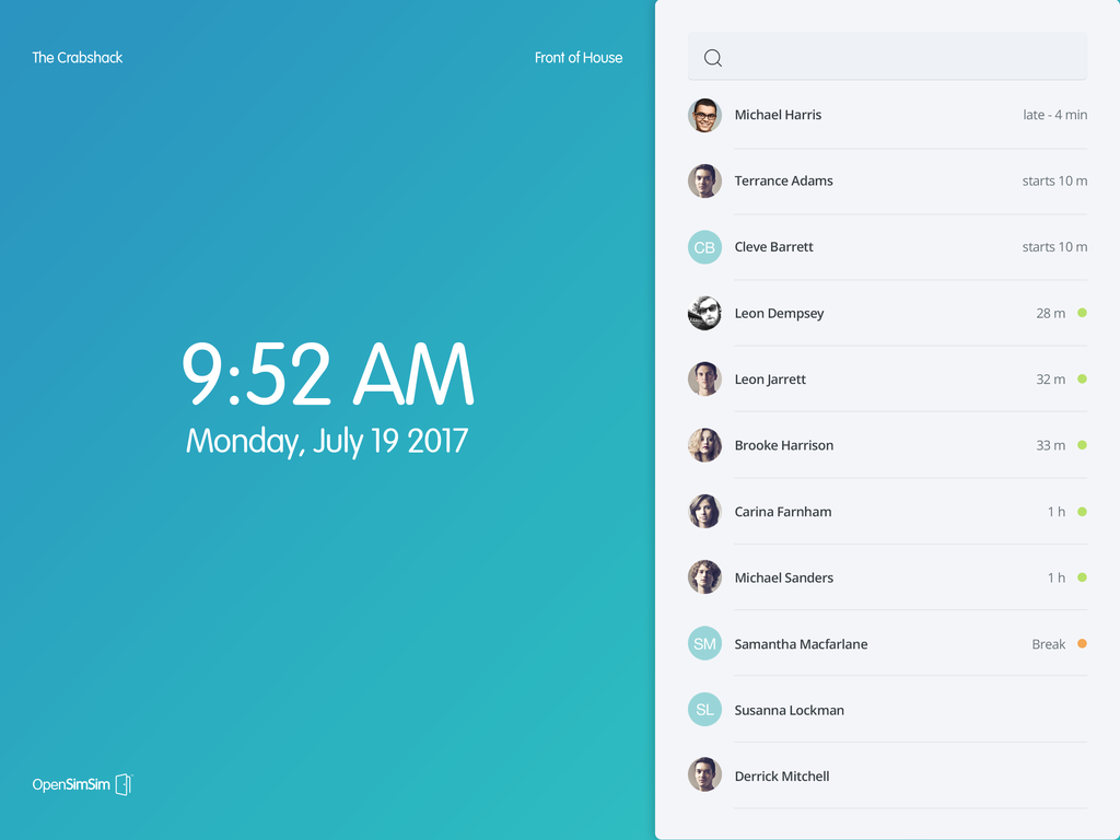 SocialSchedules Aplikacja TimeClock w wygodny sposób zamienia Twój tablet z Androidem w kiosk do rejestracji wejść i wyjść pracowników. Zarejestrowane czasy są przesyłane na Twoje konto SocialSchedules, skąd możesz edytować i zatwierdzać karty czasowe.