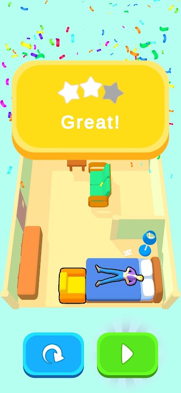 Slide furniture around a room to solve funny puzzles!