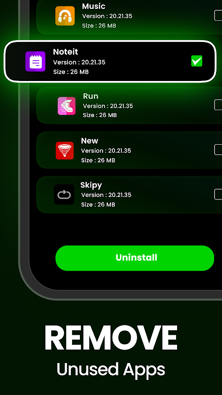 App Uninstaller pomaga odinstalować nieużywane aplikacje na raz, zwalniając pamięć urządzenia. Wybierz grupę niechcianych aplikacji, a każda deinstalacja zostanie potwierdzona przez Androida dla Twojego bezpieczeństwa. Funkcja Free Space pomaga sortować duże pliki w telefonie, aby wybrać te, które mają zostać usunięte. Wszystkie zostaną odinstalowane lub usunięte za Twoją zgodą. Proces jest bezpieczny i przejrzysty.