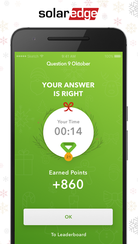 Similar to the Advent calendar tradition, on each of the 24 days leading up to Christmas, the app will ask you a question revealing one of the many SolarEdge benefits. The faster you answer the question correctly, the more points you’ll receive.