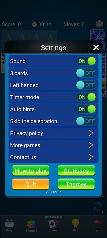 Solitaire 2025 – Classic to czysta, relaksująca gra karciana z pełną możliwością personalizacji.