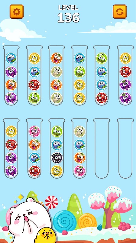 Jeśli inne gry z sortowaniem kolorów są dla Ciebie łatwe, spróbuj rozwiązać zagadki w tej grze BALLSORT COLOR. Będziesz musiał zastosować umiejętności, koncentrację i strategię, aby rozwiązywać poziomy, dopasowując kolory w jak najmniejszej liczbie ruchów.