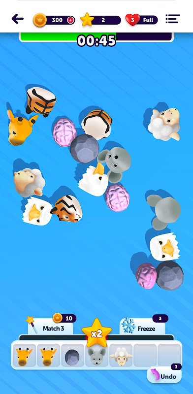 ⏳ Uważaj jednak, WYGRANIE nie jest takie łatwe, jak myślisz, a gra staje się coraz trudniejsza. Zaczynamy dodawać coraz więcej obiektów. Masz ograniczoną liczbę miejsc i czasu, aby posortować swoje przedmioty. Nie wykorzystaj ich wszystkich, bo gra się skończy! Potem zostajesz sam i musisz szybko reagować w wyścigu z czasem, aby dopasować potrójne elementy wszystkich obiektów 3D, wyczyścić planszę i zebrać jak najwięcej gwiazdek.