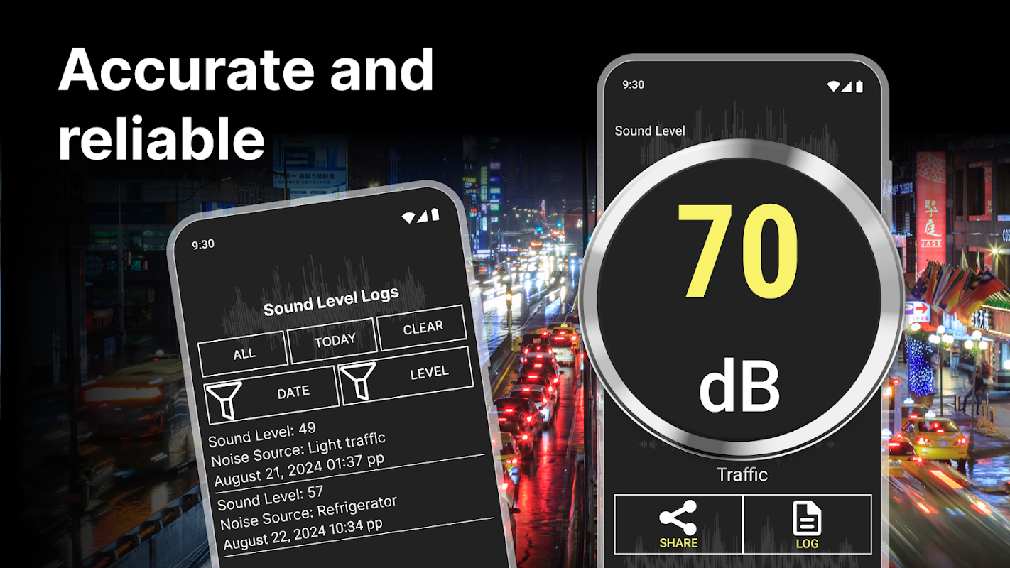 Prosta, ale potężna aplikacja, która zmienia Twój telefon z Androidem w profesjonalny miernik poziomu dźwięku i detektor hałasu.