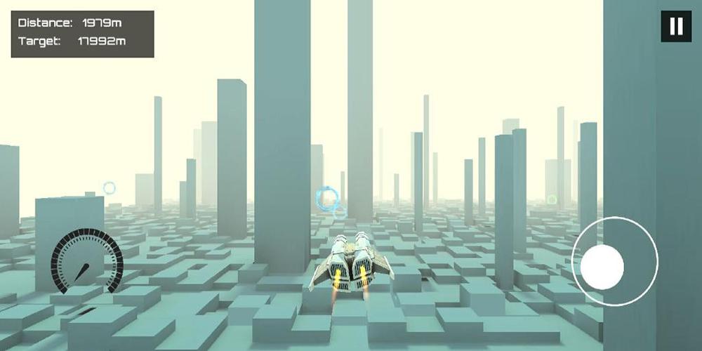 - Fly through rings and power ups to gain points to unlock new ships