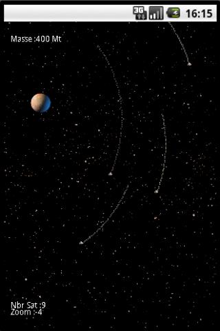 Touch the screen 5 sec to add a planet. Use the trackball to focus on a satellite.