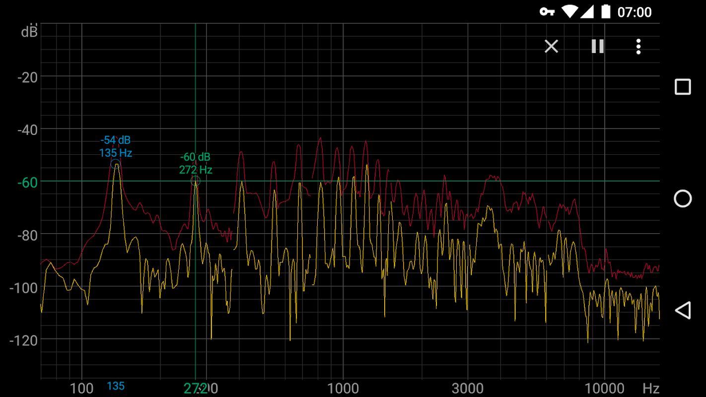 Odp .: Spectroid nie czyni twojego urządzenia skalibrowanym instrumentem. Jeśli potrzebujesz danych widma, powinieneś używać rzeczywistego analizatora widma zamiast aplikacji na urządzeniu mobilnym.