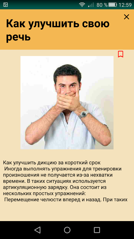 Każdego roku coraz trudniej jest znaleźć osobę, która nie tylko posiadałaby idealną dykcję, ale także stale rozwijała swoją mowę. Wiele osób zapomina, że natura rzadko nagradza dane mowy. Dlatego osoby, które chcą mieć doskonałą dykcję i wyraźną wymowę, powinny regularnie wykonywać zestaw ćwiczeń gimnastyki artykulacyjnej. Aplikacja zawiera najskuteczniejsze narzędzia i ćwiczenia dla rozwoju aparatu mowy. Rozdział:
