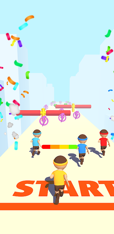 Try not to fall, struck or being punched by other player. Use boosters to speed up and heart to save your stamina. Be the first!