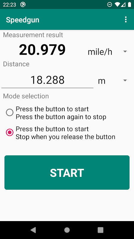 Dzięki tej aplikacji możesz bezpłatnie mierzyć prędkość piłki. Wszystko, co musisz zrobić, to nacisnąć przycisk „start/stop”. Jest to prosta i łatwa w obsłudze aplikacja z prostym ekranem i dużymi przyciskami.