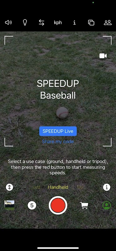 Dzięki technologii SPEEDUP Live możesz transmitować pomiary prędkości w czasie rzeczywistym do wielu urządzeń (telewizor, laptop, tablet, smartfon itp.). Po rzuceniu piłki prędkość pojawia się natychmiast w interfejsie internetowym SPEEDUP Baseball Live oraz w panelu kontrolnym SPEEDUP Live znajdującym się w aplikacji SPEEDUP Baseball. Tylko użytkownicy, którzy otrzymali Twój kod SPEEDUP Live, są uprawnieni do oglądania Twojej prędkości. Link do Twojego kodu SPEEDUP Live znajdziesz w aplikacji SPEEDUP Baseball.