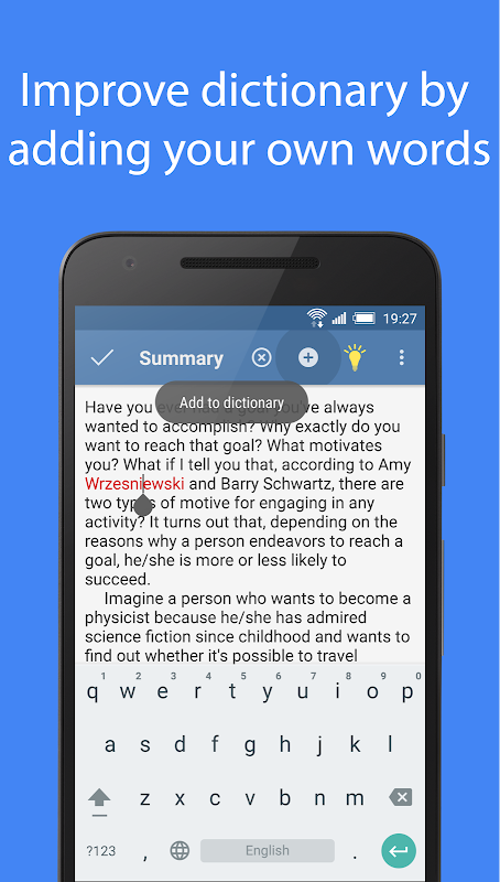Offline spell checker notepad for Android. Check and improve your spelling with Spell Checker.