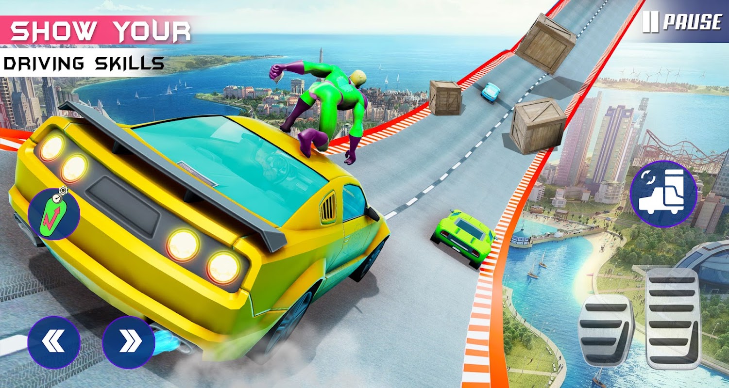 „Superhero New Car Cromisunts: Mega Ramp Racing” jest idealny dla każdego, kto szuka ekscytującej, wypełnionej akcją gry samochodowej. Pobierz teraz i dołącz do ekscytującego świata wyścigów samochodów superbohaterów i humanitarów Mega Ramp.