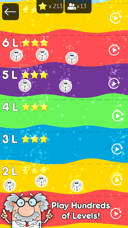 💧 Zdobywaj gwiazdki, rozwiązując łamigłówki i wymieniaj je na cofnięcia, wskazówki i przedmioty laboratoryjne. 💧 Odblokowuj nowe substancje chemiczne i inne funkcje w miarę postępów w grze