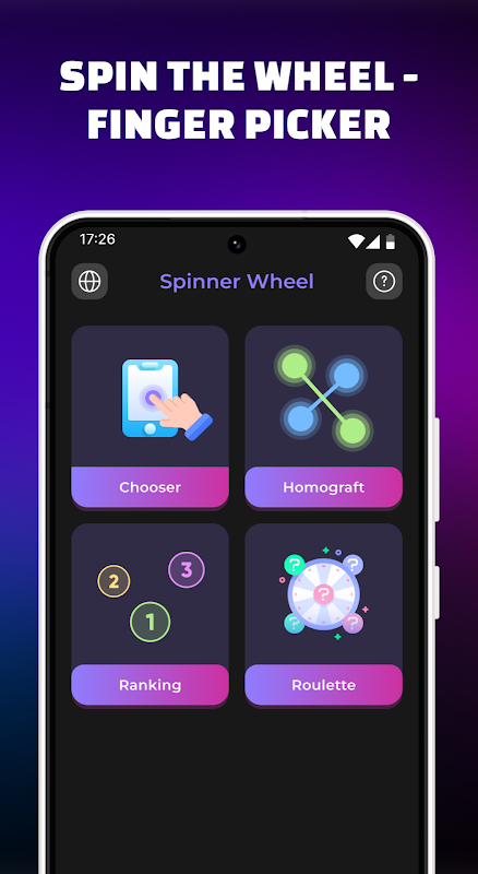 - Łatwa gra w Spin the Wheel, aby podejmować losowe decyzje