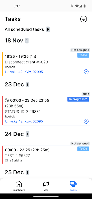 Nasza elastyczna aplikacja mobilna do planowania jest zoptymalizowana pod kątem szybkiego i wydajnego zarządzania zadaniami w terenie. Wszystkie zadania znajdują się na centralnej platformie, która jest gotowa dla techników do łatwego wykonania danego zadania i ciągłego informowania Cię o aktualnych informacjach. Ich czasem zarządza także zintegrowany kalendarz, dzięki czemu mogą szybko i sprawnie poruszać się po zaplanowanych pracach. Dawno minęły czasy drukowanych zleceń pracy — wszystkie szczegóły zadań, listy kontrolne, poświęcony czas i informacje o klientach są łatwo dostępne. Integracja z mapami zapewnia również możliwość łatwego śledzenia lokalizacji wszystkich zadań.