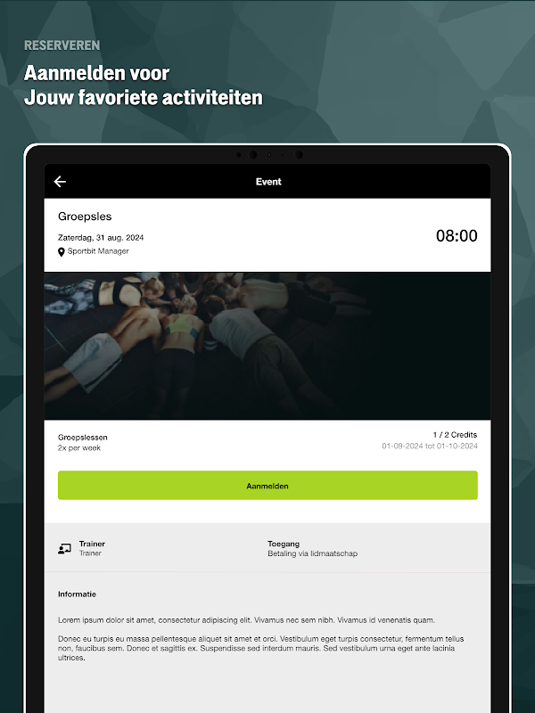 Rejestracje twoich (nowych) członków są całkowicie usuwane z rąk dzięki menadżerowi SportBit ™. Każda rejestracja daje zgodę prawną na Twoje warunki.