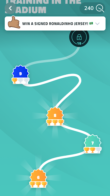 Porównaj swoje umiejętności w trybie dla jednego gracza z największymi gwiazdami futbolu wszechczasów. Pokazują ci sztuczkę, która polega na tym, że im lepiej sobie radzisz, tym więcej zdobywasz trofeów. Sztuczki stają się coraz trudniejsze, gdy zbliżasz się do wymarzonej drużyny Ronaldinho. Możesz także odblokować etapy bonusowe, uzyskując świetne wyniki na pojedynczych etapach.
