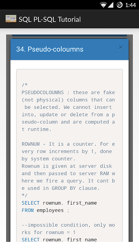 Informacje SQL and PL-SQL Tutorial APK