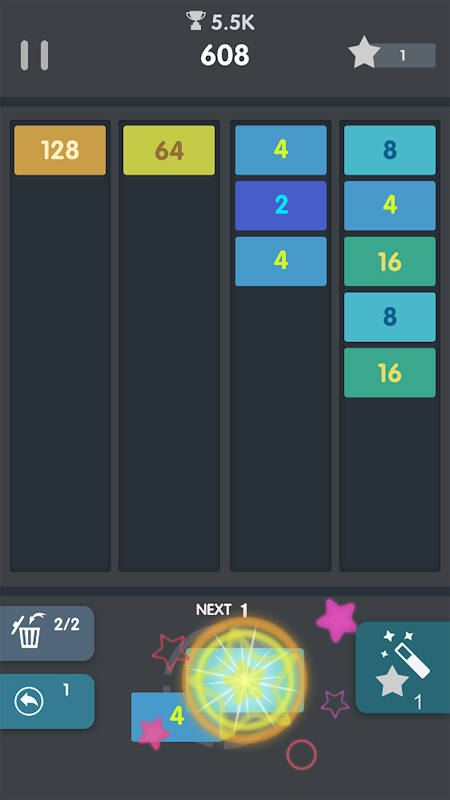 Drag blocks into different tracks, and similar blocks will compose a new block with their number added
