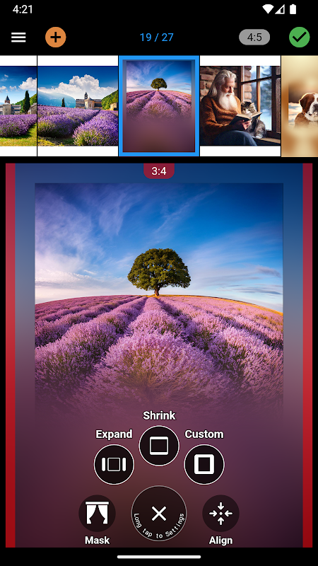 ‣ Zmień prostokątne zdjęcie w kwadratowy kształt „Instasize”.