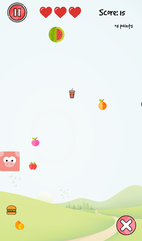 W tej grze zwierzęta lubią owoce (owoce dają punkty), a szczególnie lubią ser (ser daje dodatkowe zdrowie), a także zwierzęta nie przepadają za powszechnie serwowanymi fast foodami (fast food obniża punkty). Podczas gdy fast foody obniżają tylko punkty, posiłki typu burger i frytki obniżają twoje zdrowie, z którego trudniej się wyleczyć, po prostu dlatego, że ser jest tak rzadki :D. Niestety, jak w wielu grach, nasza gra zawiera również bomby, więc staraj się ich unikać, ponieważ jeśli w nie trafisz, gra się kończy...