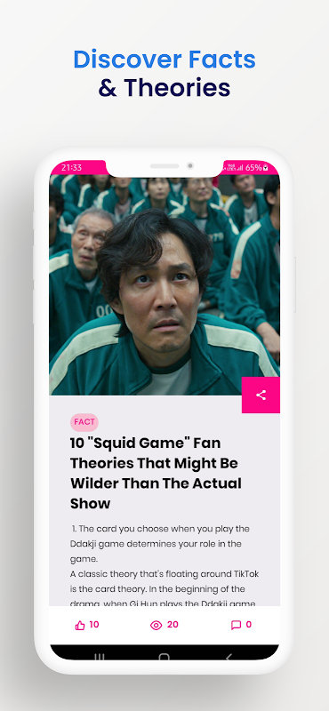 The application contains details and facts about the famous Netflix show Squid game