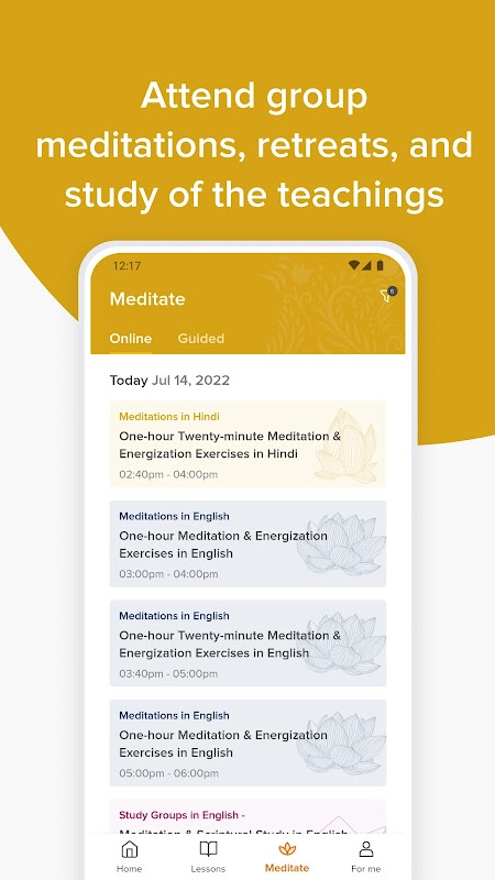 Dla tych, którzy są studentami lekcji SRF/YSS, aplikacja zawiera cyfrowe wersje lekcji wraz z bogatą gamą treści multimedialnych, które pomogą ci zastosować nauki krija jogi SRF/YSS w codziennym życiu.