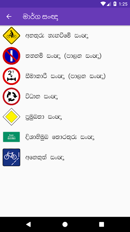 ✓ මාර්ග සංඥා පිළිබඳ විස්තර අන්තර්ගතය.